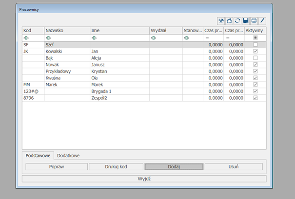 Następnie tworzymy poprzez DODAJ, nową Brygadę, czy zespół. Wprowadzamy dane dla nazwy i kodów.