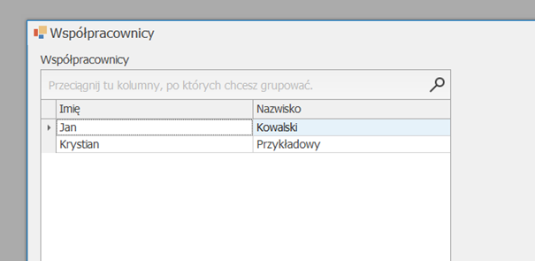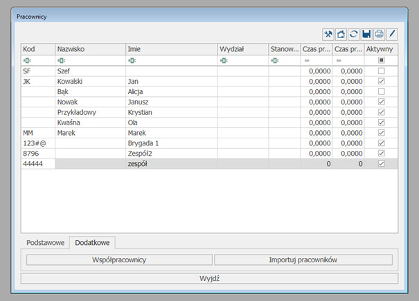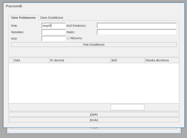 Zapisujemy, następnie wybieramy pozycje DODATKOWE i definiujemy, kto wchodzi w skład zespołu. Korzystając z polecenia WSPÓŁPRACOWNICY.
