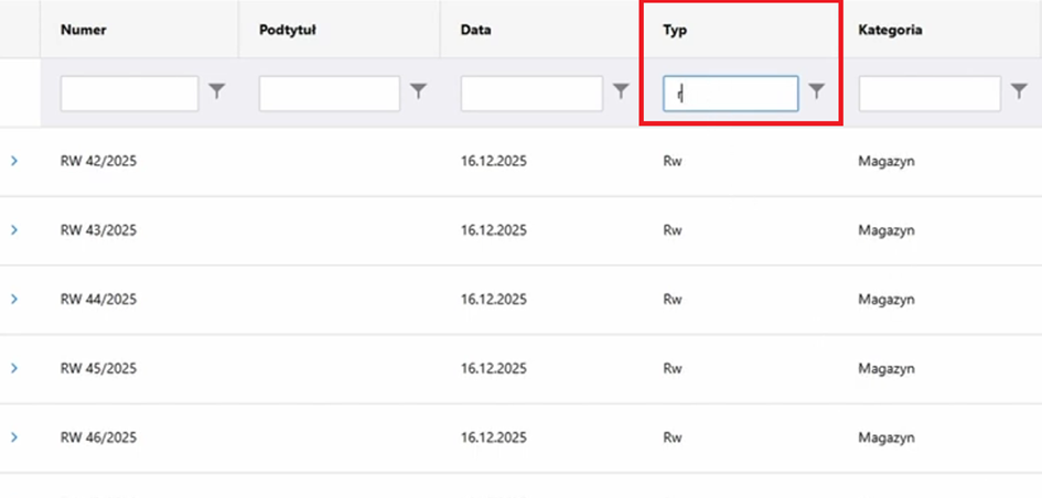 Za pomocą filtra możemy określić typ dokumentu, który chcemy wyświetlić.