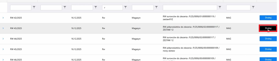 Jeżeli chcemy wydrukować tylko jeden dokument, możemy skorzystać z opcji Drukuj przypisanej każdemu dokumentowi osobno.