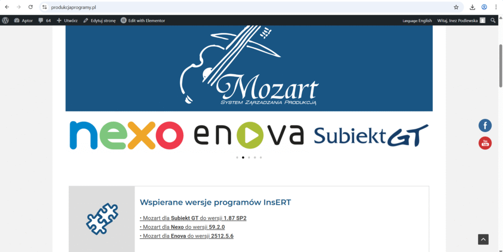 Informacje o najnowszych wersjach systemu Mozart Produkcja, kompatybilnych z systemami magazynowymi znajdziecie na stronie głównej https://produkcjaprogramy.pl/