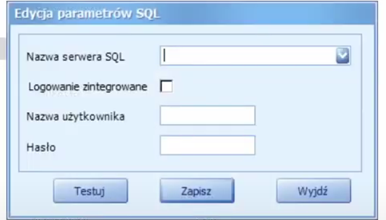 Możemy skorzystać z opcji przetestowania połączenia z serwerem. Jeżeli pojawi się komunikat, że połączenie jest poprawne, możemy zapisać dane. Otworzy się główne okno logowania Mozarta, w którym wybieramy bazę. Po chwili pojawi się formularz logowania użytkownika wprowadzamy hasło, którym logujemy się do naszego systemu magazynowego.